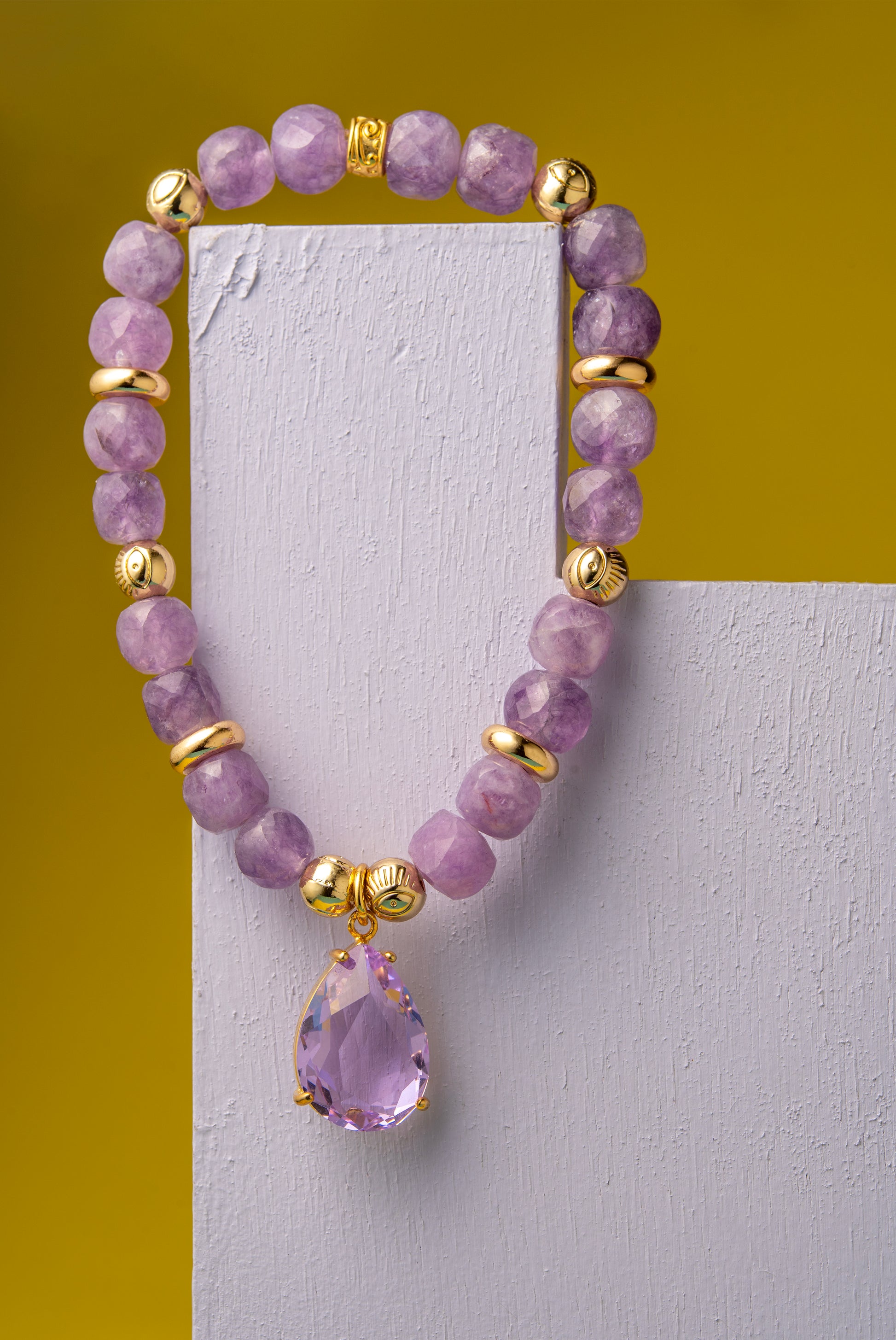 Βραχιόλι με κρύσταλλα και χρυσό σε χρώμα μωβ ,