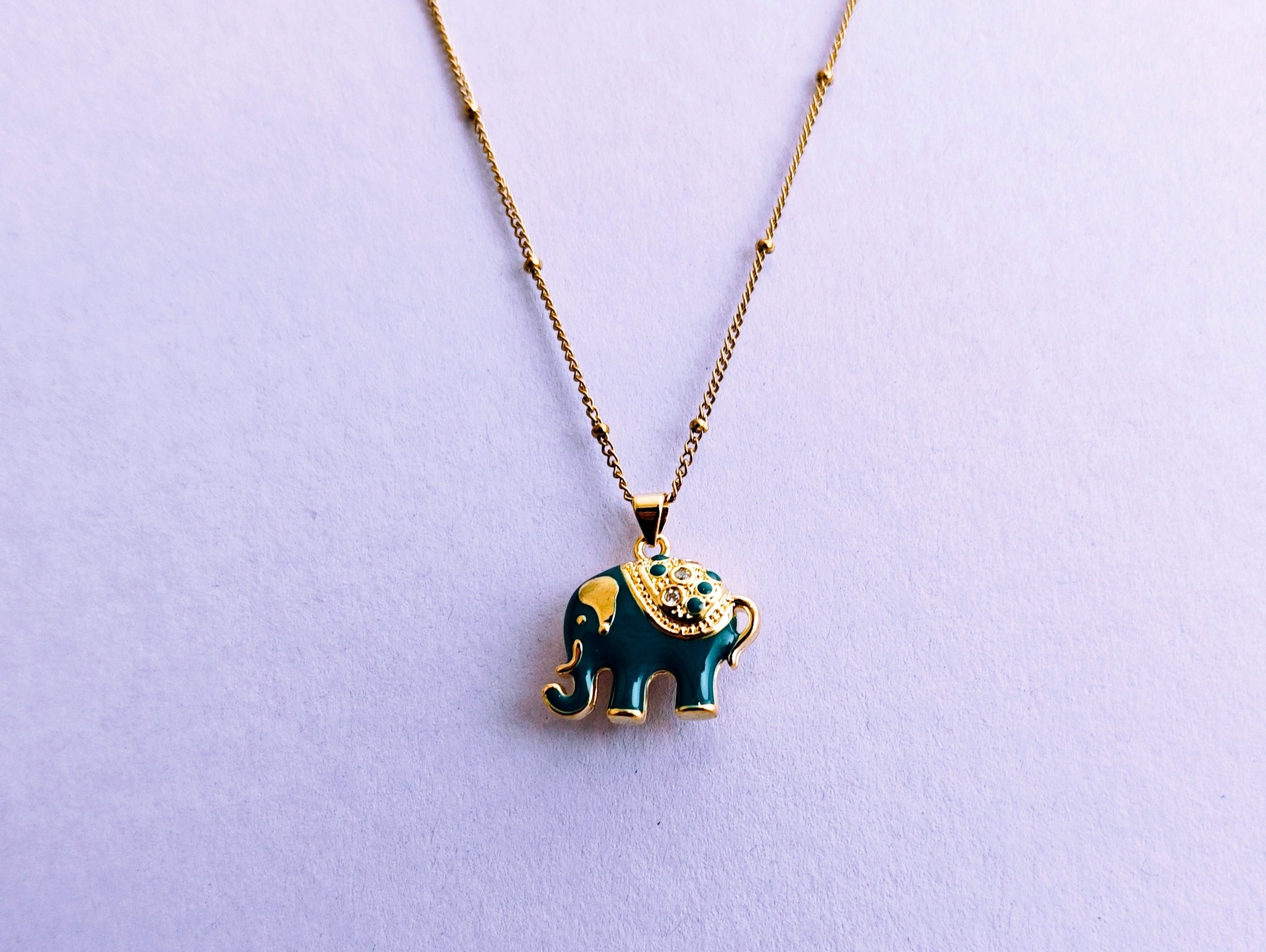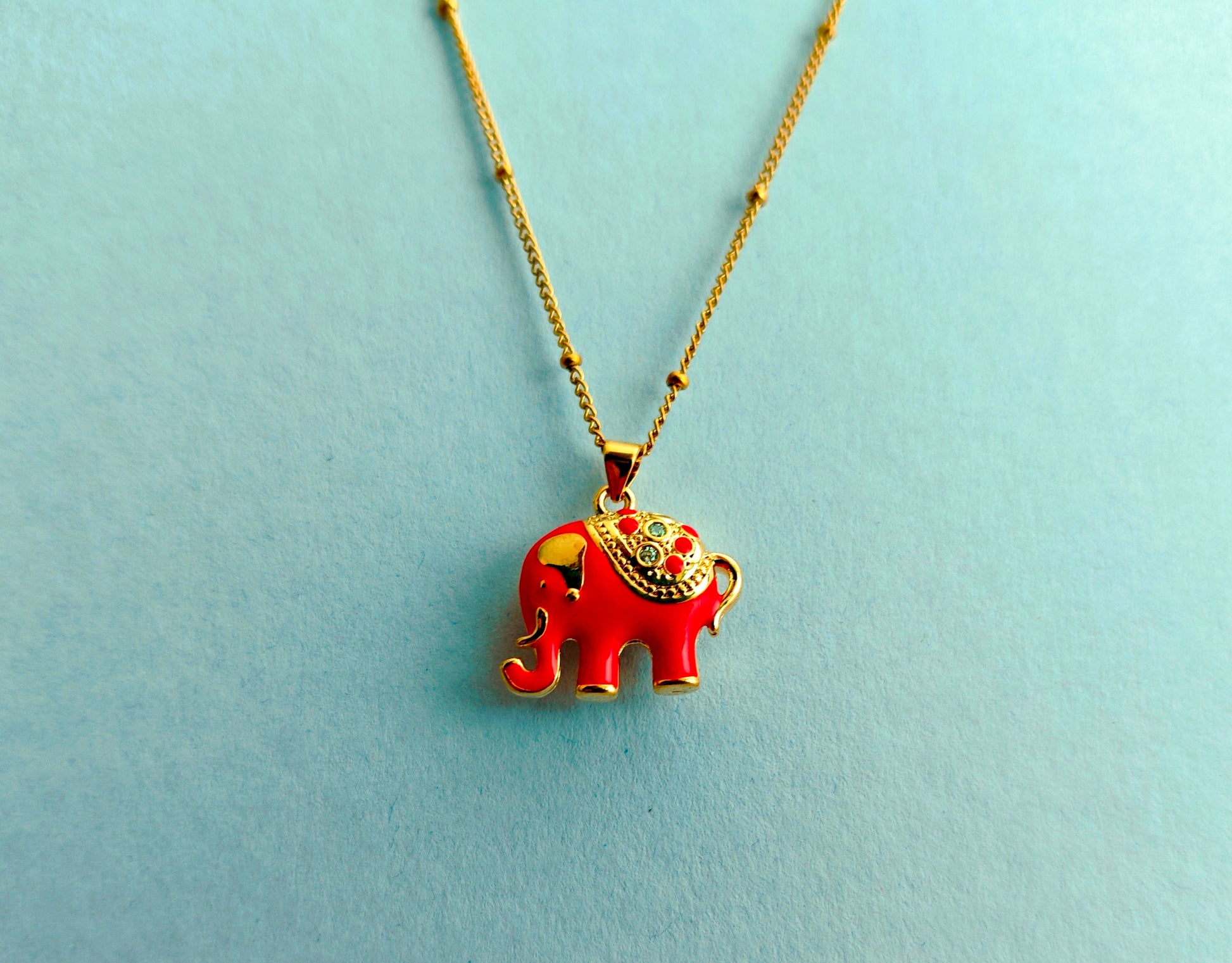 Κρεμαστό ελεφαντάκι από ατσάλι σε χρώμα κόκκινο, άσπρο, πράσινο ή μαυρο με χρυσή αλυσίδα (50 cm+ 5 επέκταση)