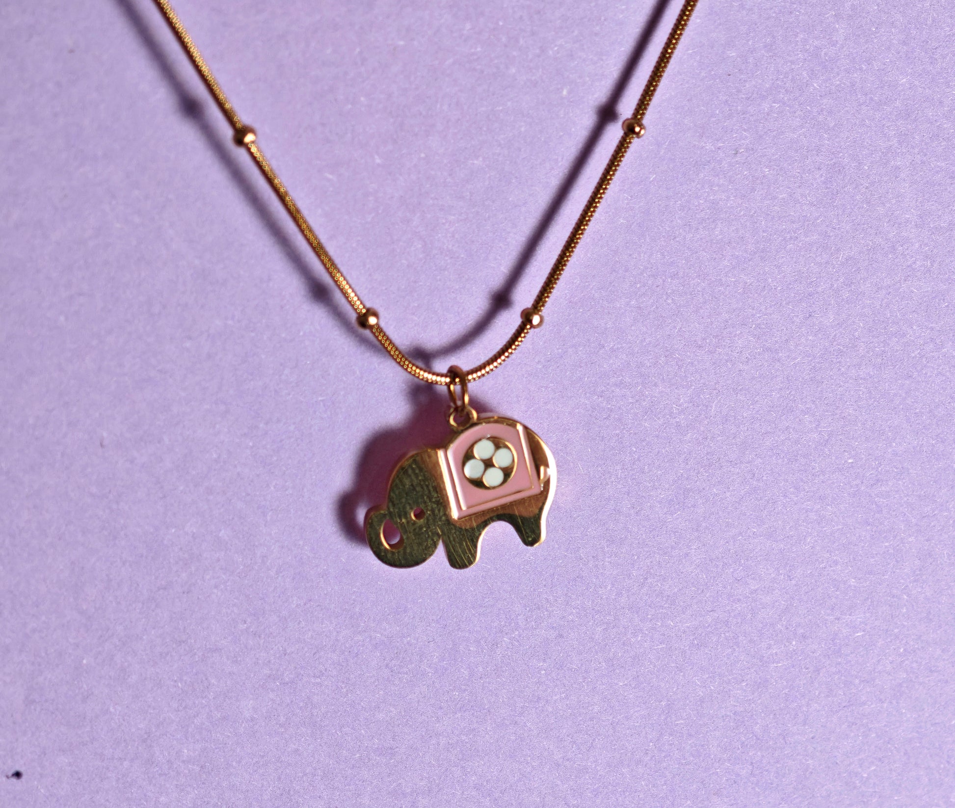 Κρεμαστό ελεφαντάκι από ατσάλι σε χρώμα χρυσό με ρόζ σμάλτο (50 cm+ 5 επέκταση)