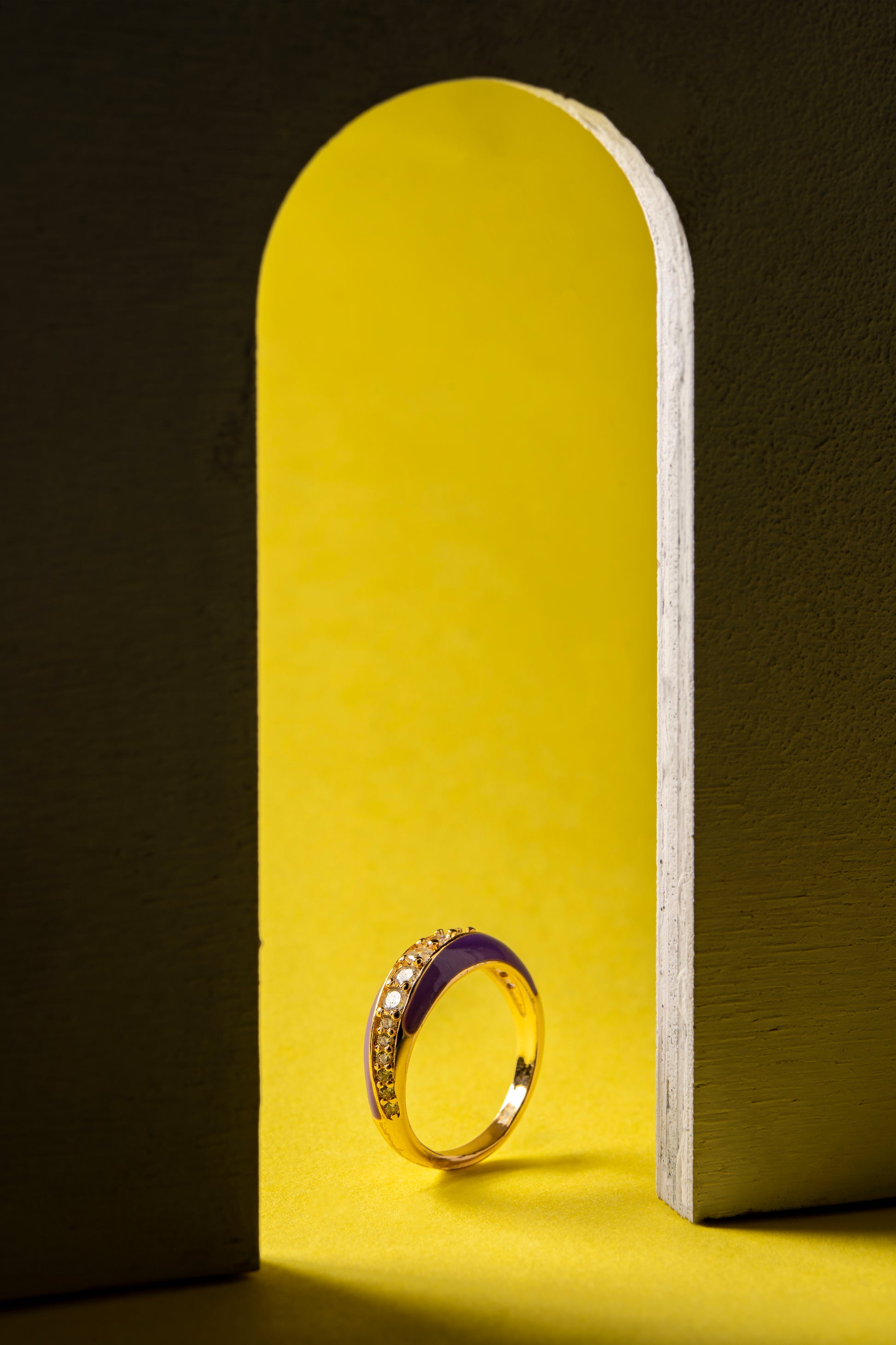 Ατσάλινο δαχτυλίδι με μωβ σμαλτο και στρας , σε χρυσό χρώμα Νο 18