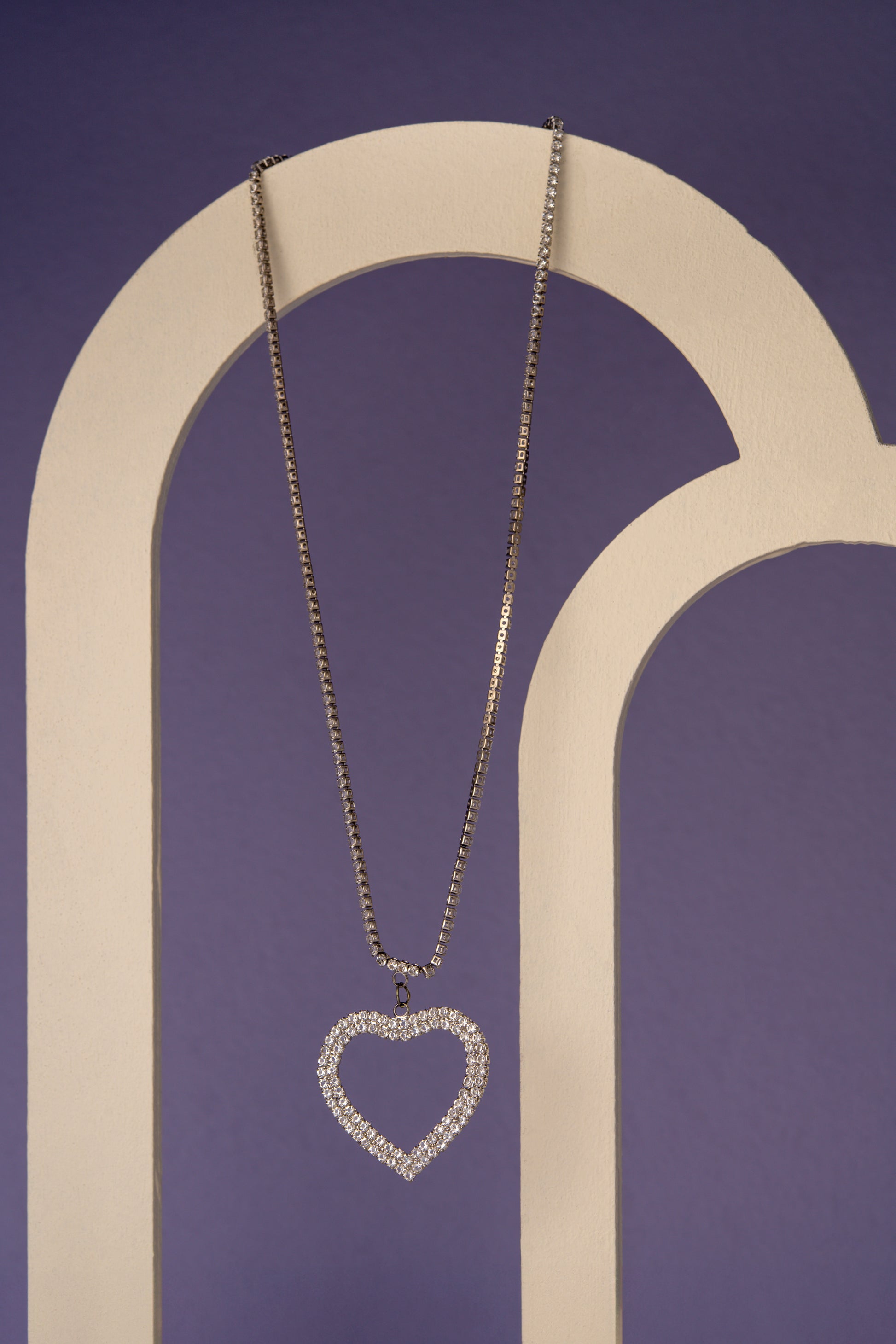 Κολιέ σε σχήμα καρδιάς με στρας σε ασημί και σε χρυσό χρώμα (50 cm)