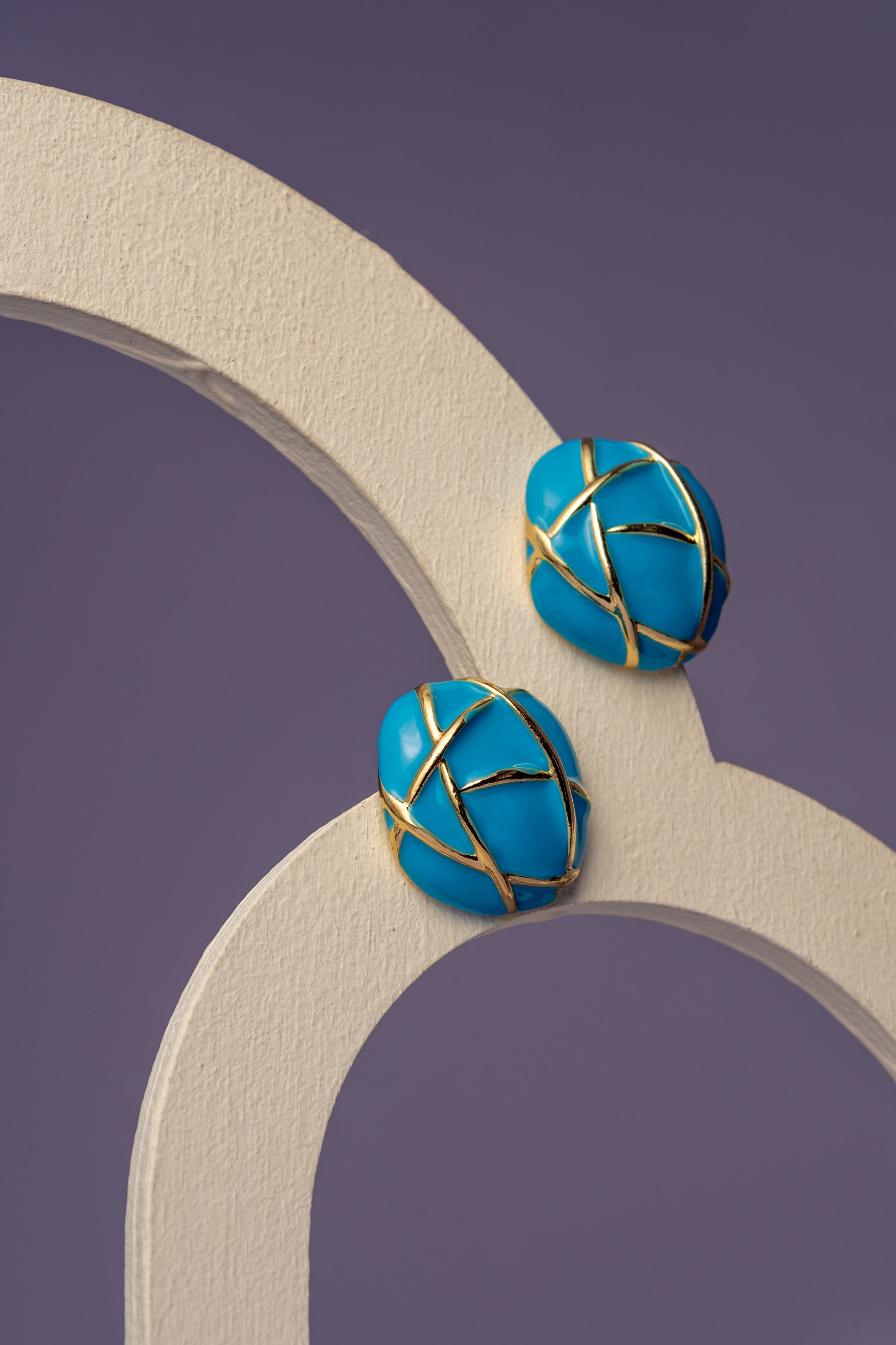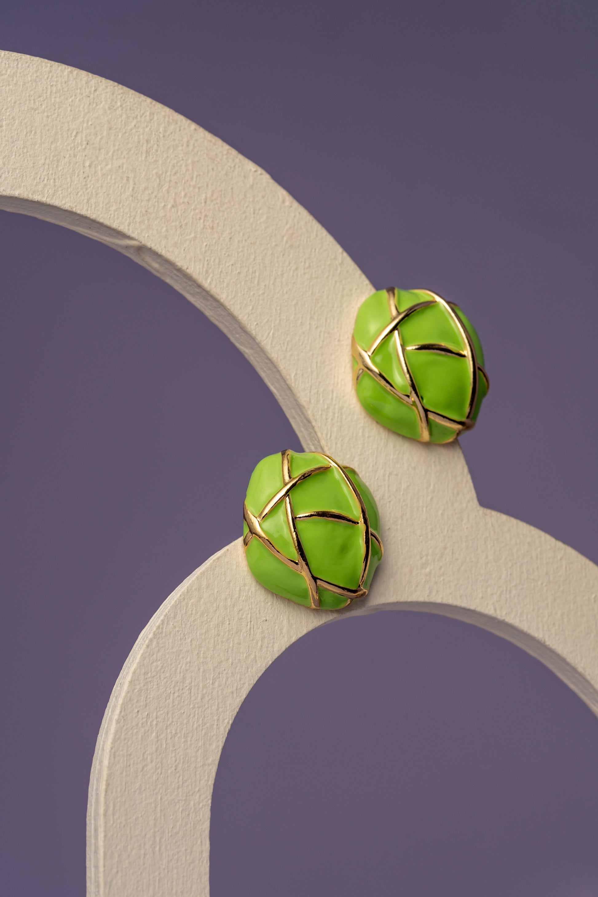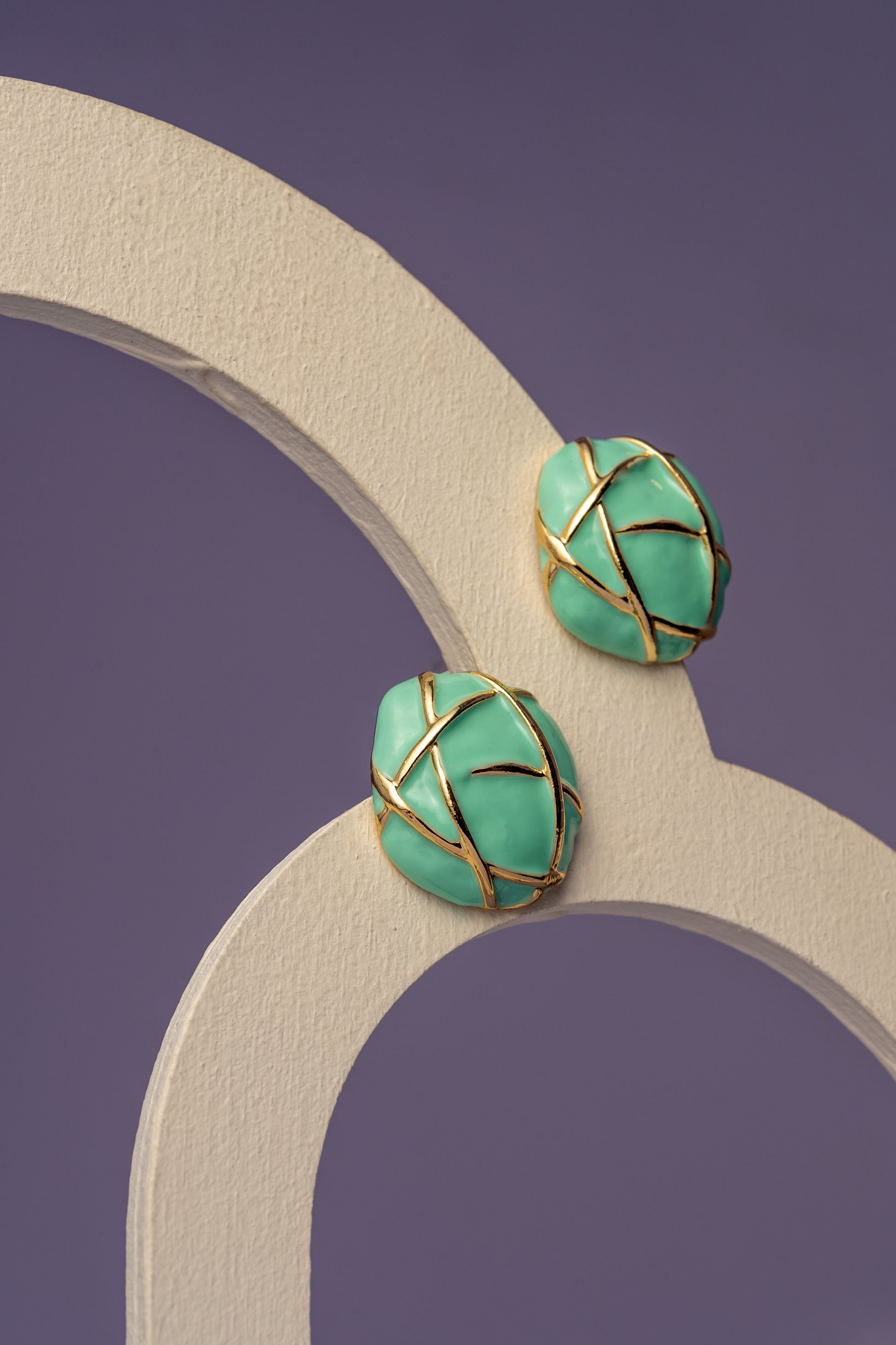 Σκουλαρίκια από ατσάλι και σμάλτο σε χρώμα πράσινο, τυρκουαζ , κιτρινο και γαλάζιο