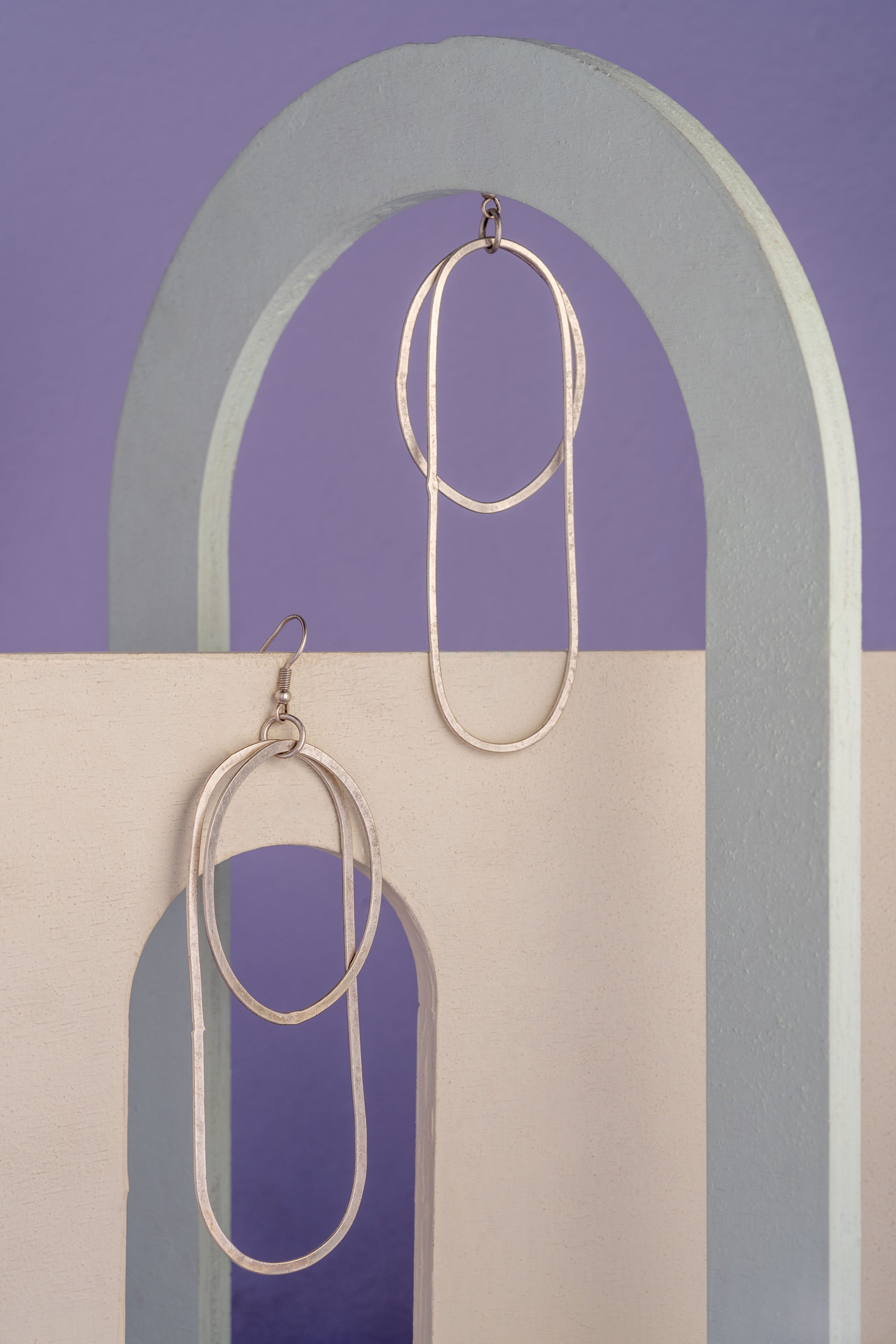 Χειροποίητα εντυπωσιακά σκουλαρίκια σε ασημί ματ χρώμα