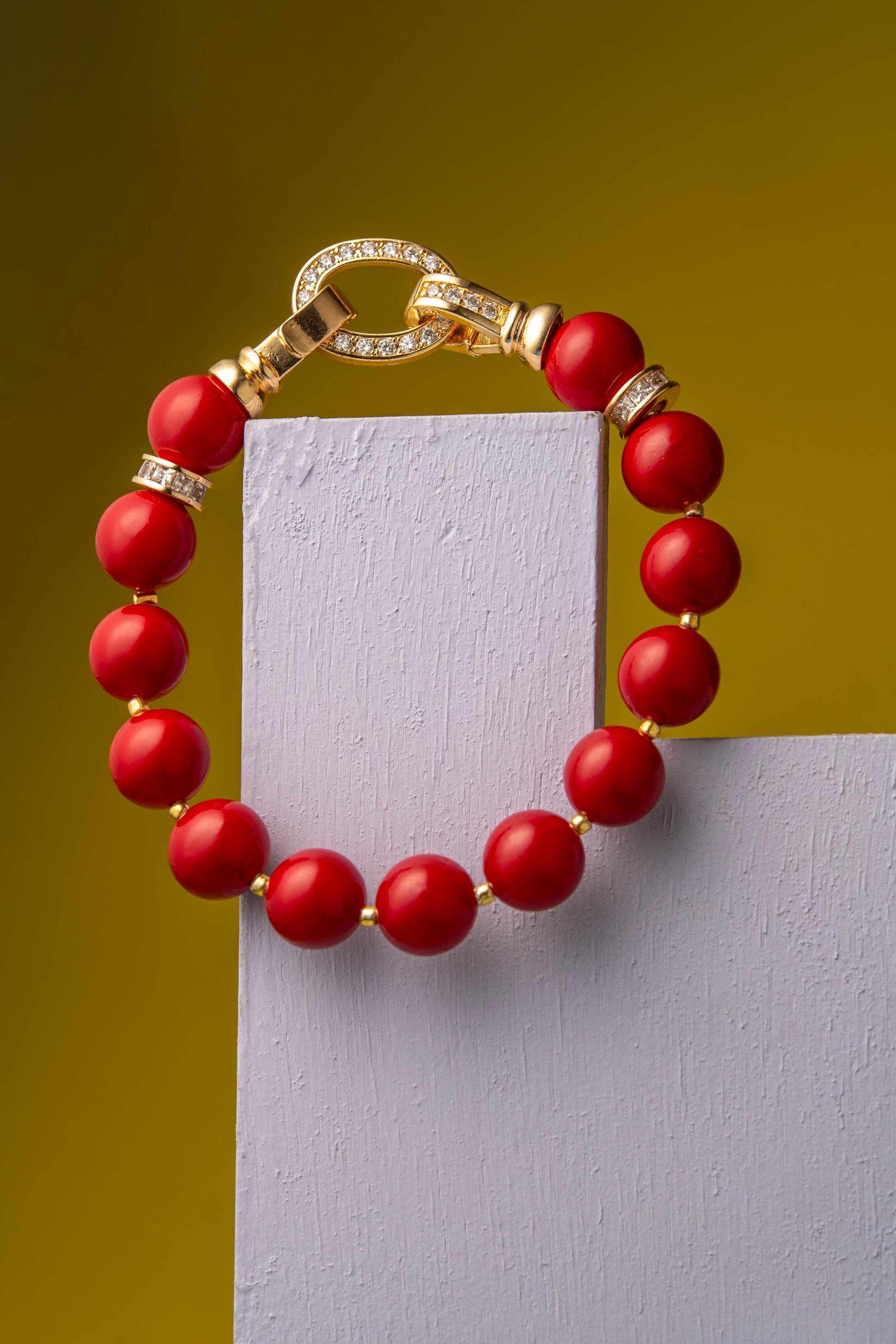 Χειροποίητο βραχιόλι με κόκκινες πέτρες και χρυσό κούμπωμα με ζιργκόν