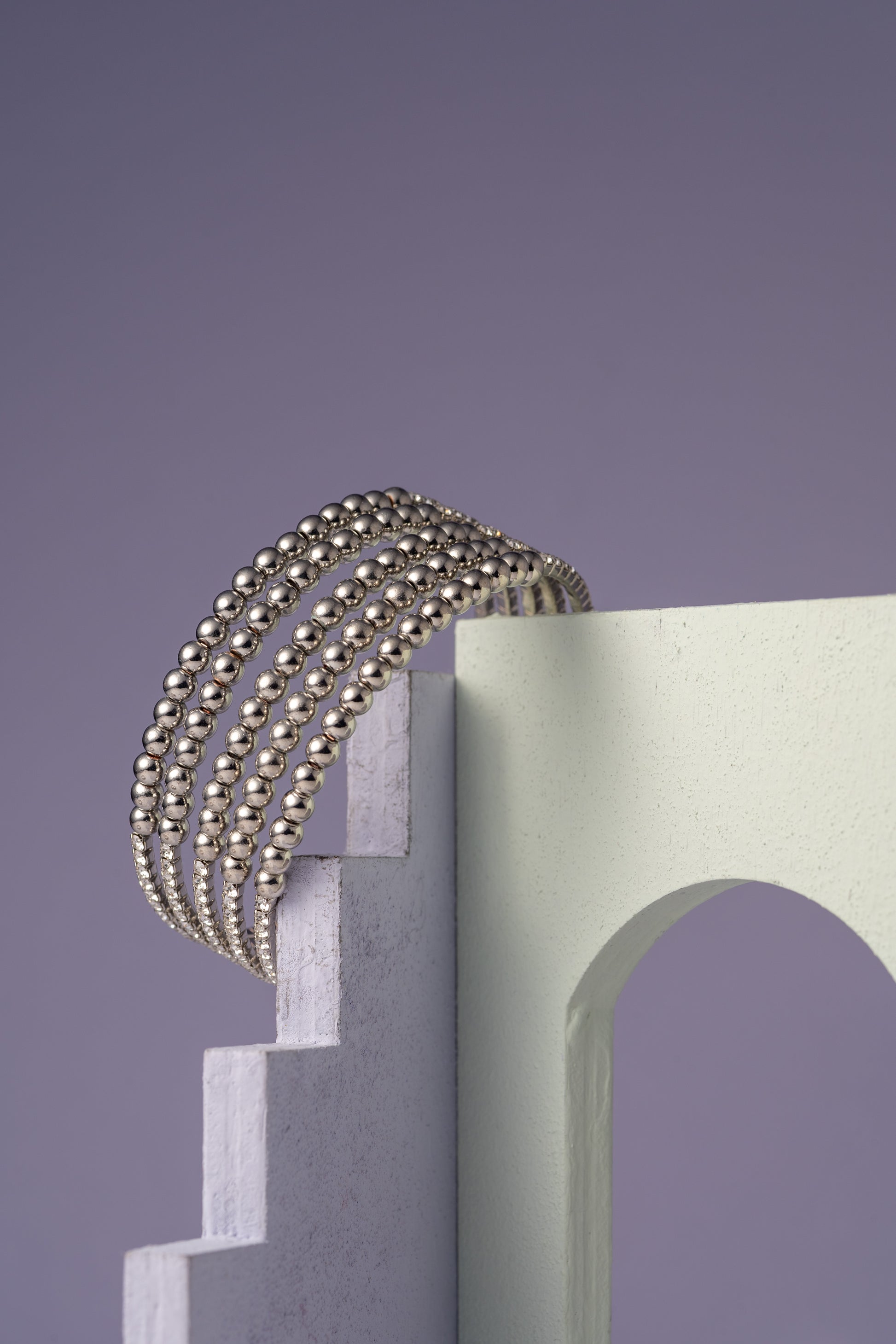 Βραχιόλι από ατσάλι με πέντε σειρές μπίλιες σε ροζ χρυσό και σε ασημί χρώμα