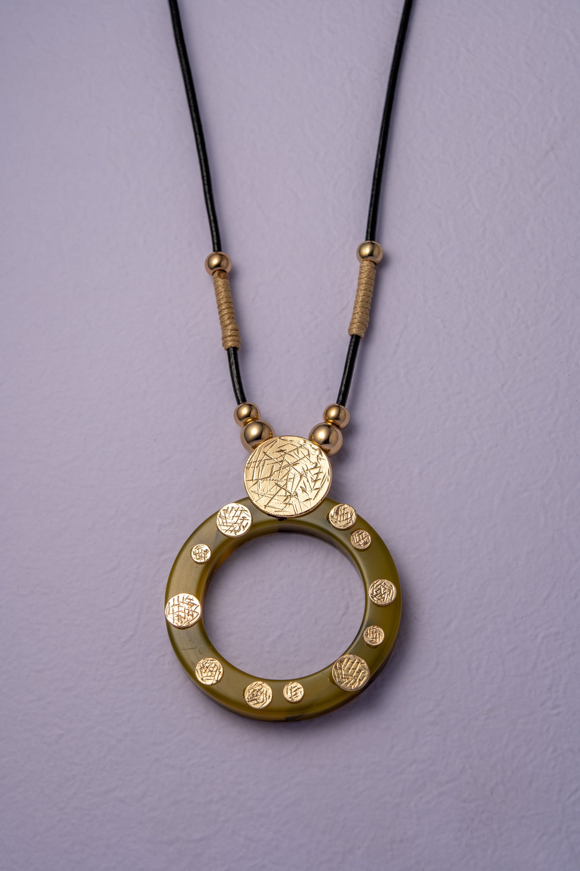 Eντυπωσιακό κολιέ σε πράσινο χρώμα με χρυσά στοιχεία σε κορδόνι {55 cm}